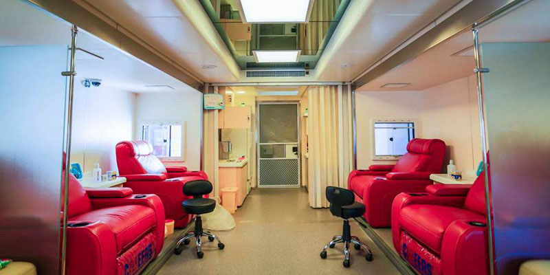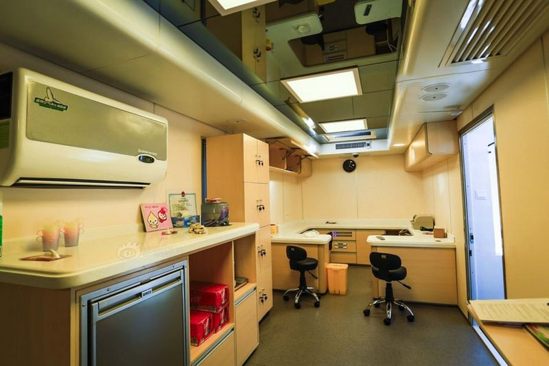 獻血房車里面必須配備消毒設備比如醫用空氣消毒機等,保證獻血環境安全。此外,每天獻血房車衛生的打掃,一些器材的配備都要滿足一人一用比如說針頭之類的。其次,溫馨舒適的環境會讓獻血的人能夠充分放松。如今的獻血房車都會配備冷暖空調、液晶電視、冰箱等設備,每個去獻血的人都能感受到家一般的溫馨舒適,而且里面還有準備一些零食和糖果,要是獻血者感到緊張就可以吃點甜點緩解情緒。