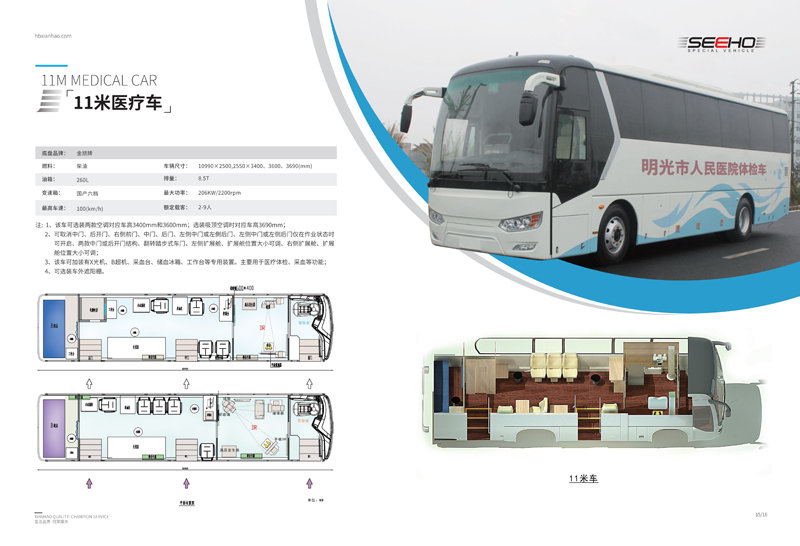 我司生產(chǎn)的職業(yè)病體檢車均選用一線品牌車(宇通、金龍、金旅); 車長有6米、7米、8.2米、9米、10.5米、11米、12米可選。